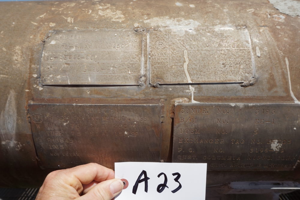 Heat exchanger, 23 foot long, 4 foot diameter.