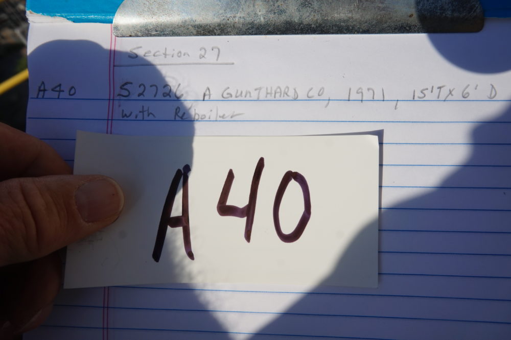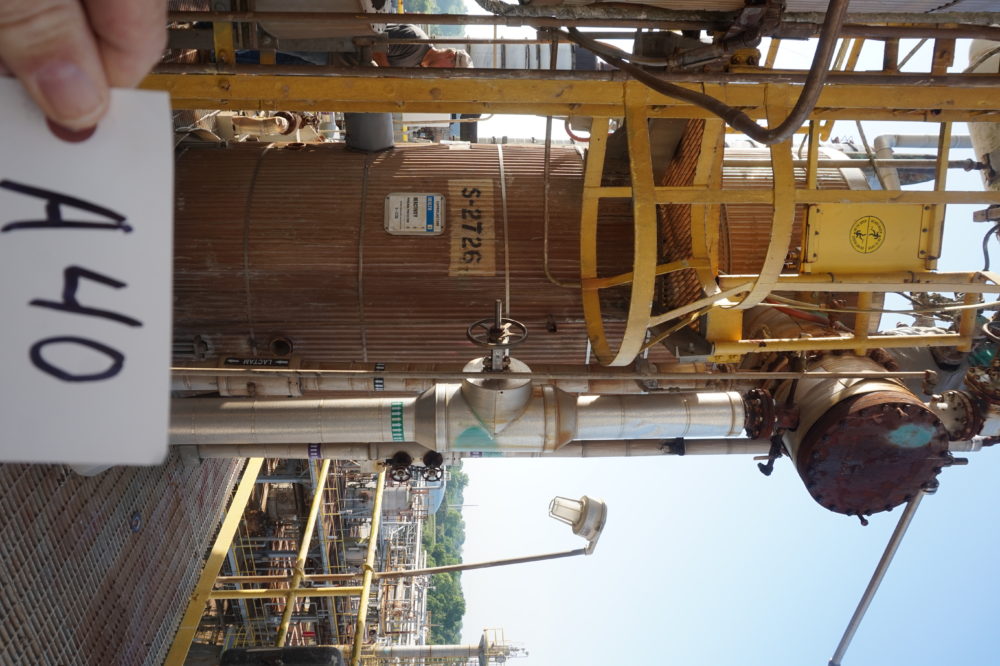 LOT# A40: Distillation column with reboiler, 15 foot tall, 6 foot diameter.