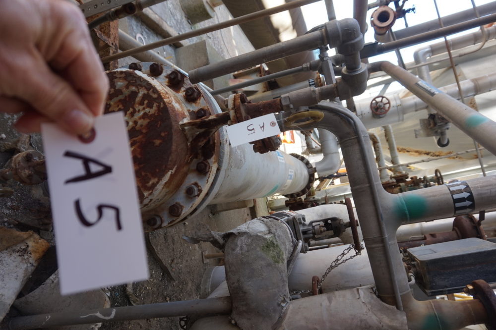 LOT# Q05: Heat exhanger, 5 foot long, 2 foot deep, 7 foot tall; with old piping, pumps, valves, etc.