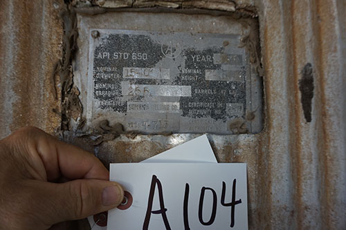 LOT# A104: Storager tank, 7.5 foot tall, 15 foot diameter, capacity 10,710 gallons.