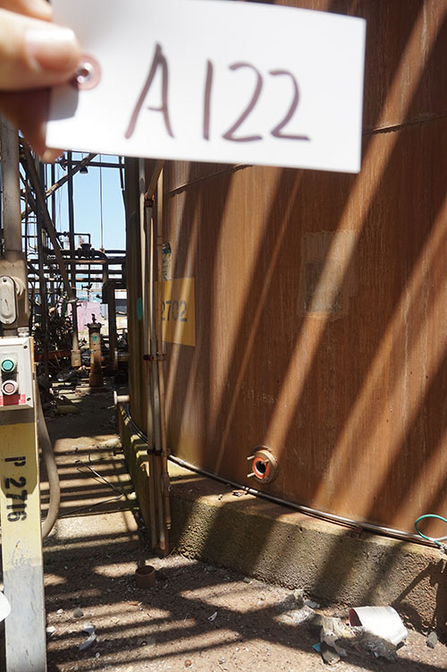 Storage tank, 16 foot tall, 15 foot diameter, capacity 22,050 gallons.