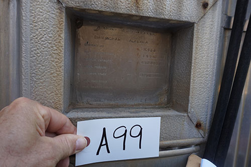 LOT# A99: Storage tank, 25 foot tall, 15 foot diameter, capacity 27,720 gallons.