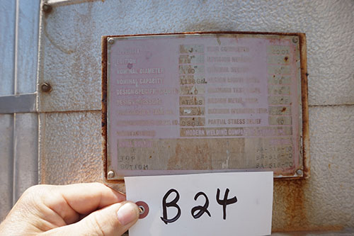 LOT# B24: Process tank, 96 inches tall, 60 inches diameter, capacity 1156 gallons.