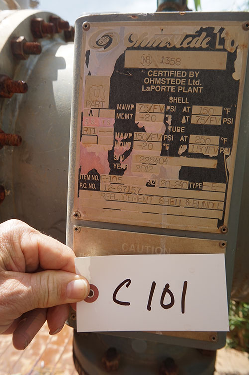 Heat exchanger, 15 foot long, 5 foot diameter.
