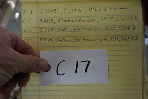 Heat exchanger, 15 foot long, 5 foot diameter.