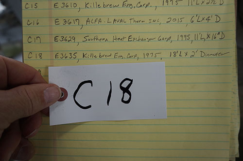 Heat exchanger, 15 foot long, 5 foot diameter.