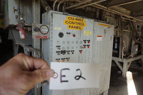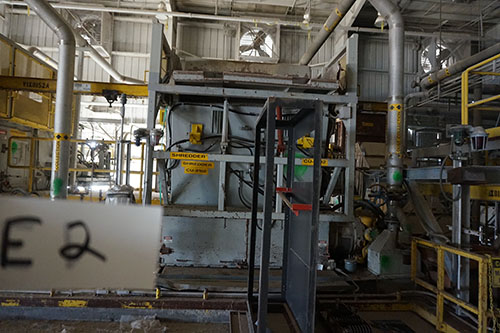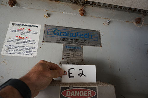 LOT# E2: Carpet shredder with control panels, and hydraulic motors, associated equipment. 23Ft long x 10.5ft wide x 16ft tall.