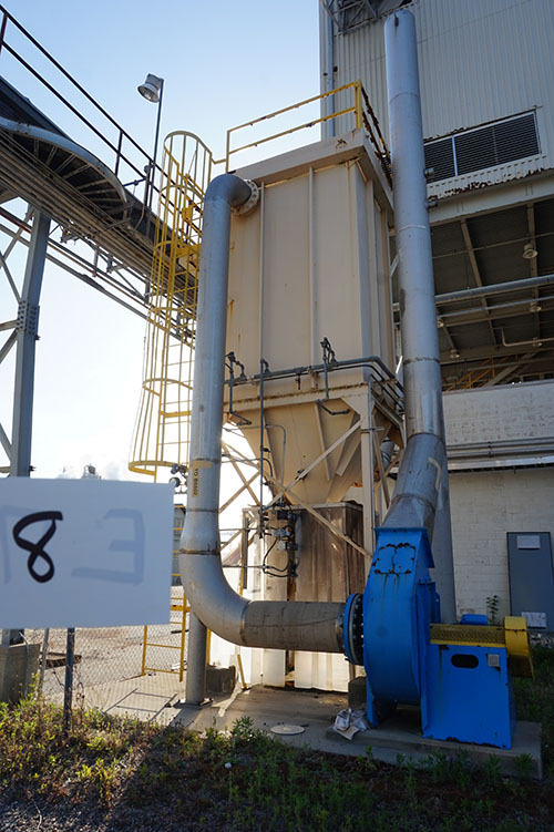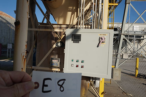 LOT# E8: DC8802, Dust collector with blower, control panel, slide gates, and associated equip.20ft tall.