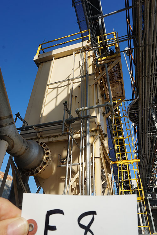 DC8802, Dust collector with blower, control panel, slide gates, and associated equip.20ft tall.