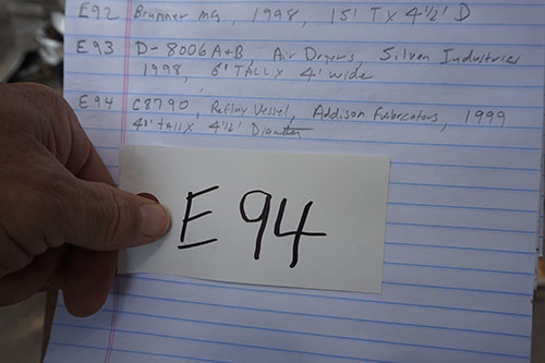 LOT# E94: Process column reflux vessel, 40 foot tall, 4.5 foot diameter.
