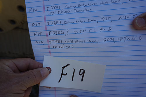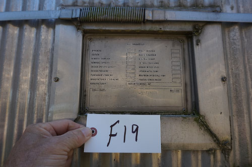 LOT# F19: Storage tank, 18 foot tall, 31 foot diameter, capacity 101,629 gallons.