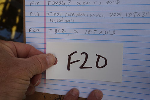 LOT# F20: Storage tank, 18 foot tall, 31 foot diameter, capacity 101,629 gallons.