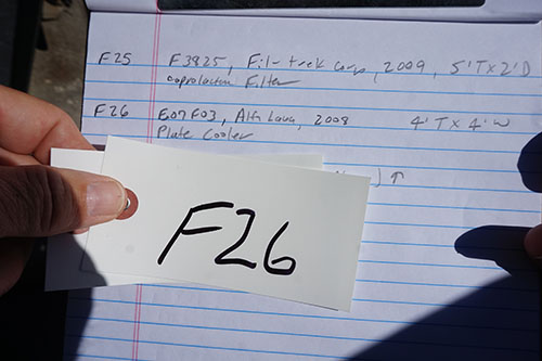 LOT# F26: Heat exchanger, plate cooler, 4 foot tall, 4 foot wide.