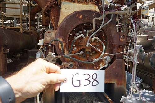 LOT# G38: Multi stage air compressor, with associated piping, lube and control systems.