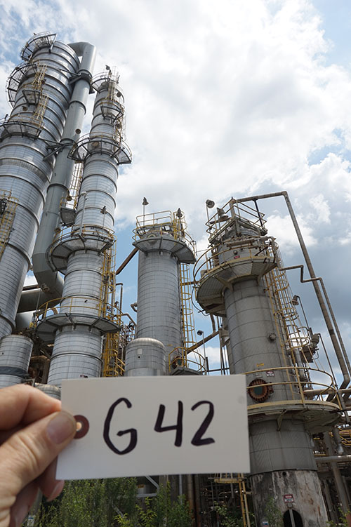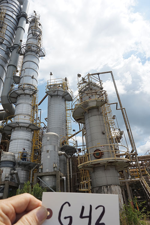 LOT# G42: Process column with reboiler, 90 foot tall, 9 foot diameter.