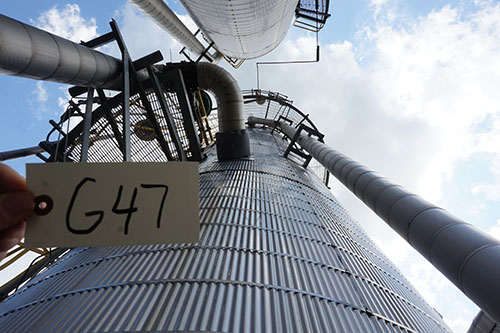 LOT# G47: Process column with reboiler, 80 foot tall, 12 foot diameter.