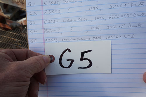 LOT# G5: Heat exchanger, 105 inches long, 12 inches diameter.