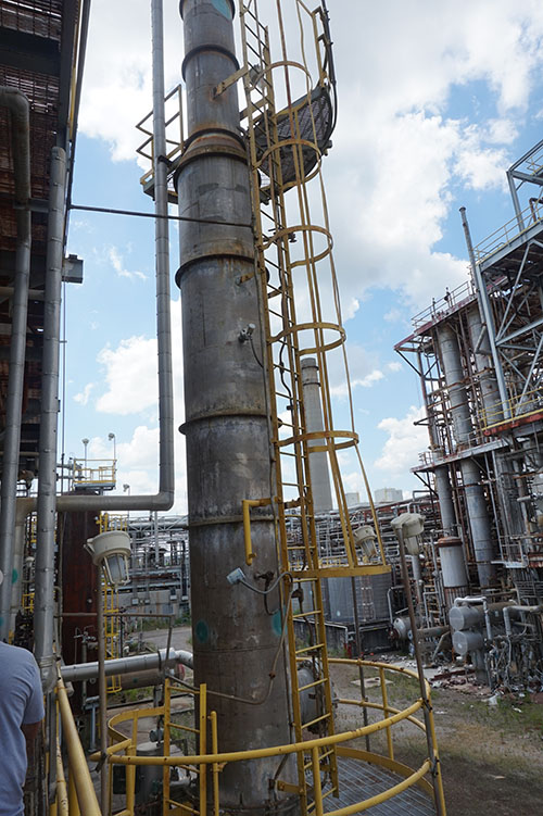 Process column with reboiler, 110 foot tall, 15 foot diameter.