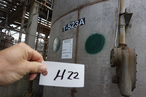 Storage tank, 16 foot tall, 15 foot diameter, capacity 22,050 gallons.