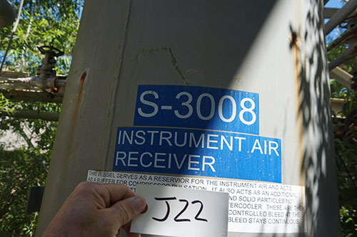 Abandoned process seperator and coalescer, 35 foot tall, 10 foot diameter.