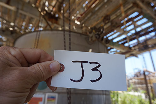 Abandoned process seperator and coalescer, 35 foot tall, 10 foot diameter.