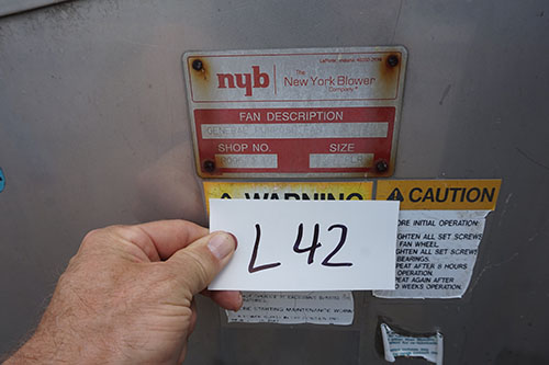 LOT# L42: Process blower, 6 foot tall, 5 foot wide.