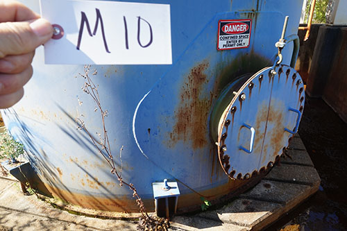 Sulfuric acid storage tank, 20 foot tall, 12 foot diameter.