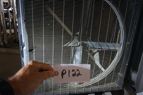 Water cooled portable fan for large warehouse areas.
