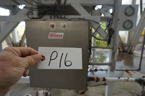 LOT# P16: Conveying vessel with control panel and associated equipment, 8 foot tall 5 foot diameter.
