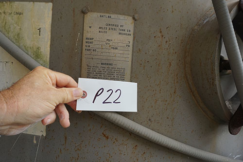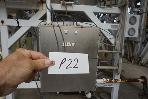 LOT# P22: Conveying vessel with control panel and associated equipment, 8 foot tall 5 foot diameter.