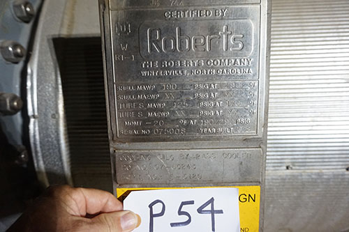 LOT# P54: Heat exchanger, 9 foot long, 2 foot 8 inches diameter.