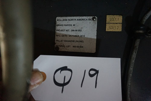 LOT# Q19: Automatic palletizer with controller and roller system, 25 foot long, 12 foot tall.