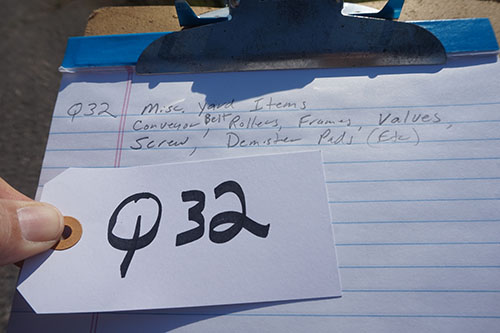LOT# Q32: Miscellaneous items in laydown yard – rollers, frames, valves, coveyors, belts, screws, demisters, etc.